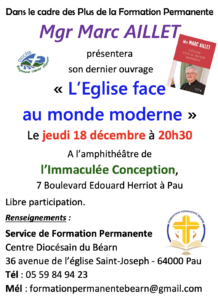 La conférence de Monseigneur Marc AILLET aura lieu le jeudi 18 décembre à 20h30 à l’amphithéâtre  de l’Immaculé Conception.